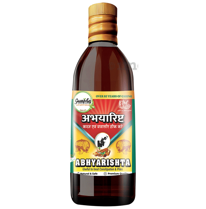 Guapha Ayurveda Abhayarishta is a natural Ayurvedic formulation for treating bleeding and non bleeding piles. Abhayarishta helps in improving the digestion capacity and Intestine health. It promotes the propulsion of food through the digestive tract and allows for an easy passage of stools. It has laxative action by increasing peristalsis of intestine and relives in constipation, flatulence. This ayurvedic medicine helps to treat any kind of piles and it also gives relief from pain which occurs due to piles. Guapha Ayurveda Ayurveda Abhayarishta gives relief from indigestion related problem. It can be safely given to children, women and elderly people. Moreover, it exhibits antioxidant activity and improve liver function.