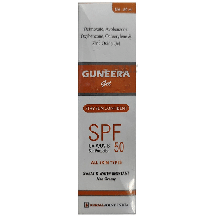 A licensed vendor partner from your nearest location will deliver Guneera SPF 50 Sunscreen Gel with UVA/UVB Sun Protection | All Skin Types | Sweat & Water-Resistant. Once the pharmacy accepts your order, the details of the pharmacy will be shared with you.