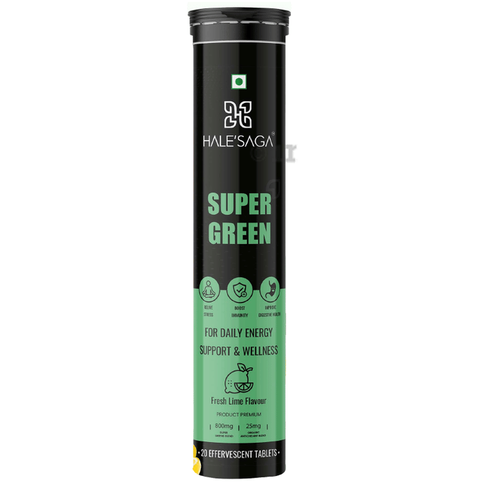 Halesaga Super Green Effervescent Tablet is a powerful blend of nutrient-rich greens in a convenient and effervescent form. Packed with a variety of superfoods like wheatgrass, alfalfa, ashwagandha, and moringa, etc, this tablet provides a quick and easy way to boost your daily intake of vitamins, minerals, and antioxidants. It helps to improve digestion, relieves stress, boosts immunity and promotes radiant skin. The effervescent formulation ensures maximum absorption and bioavailability of nutrients, making it an excellent choice for individuals looking to enhance their overall health and well-being. Simply drop the tablet in water, watch it fizz, and enjoy a refreshing and nourishing green drink. Halesaga super green effervescent tablet is a convenient and effective way to incorporate the power of greens into your daily routine.