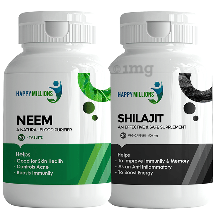 Happy Millions Combo Pack of Neem Tablets (30) & Shilajit Veg Capsules (30)