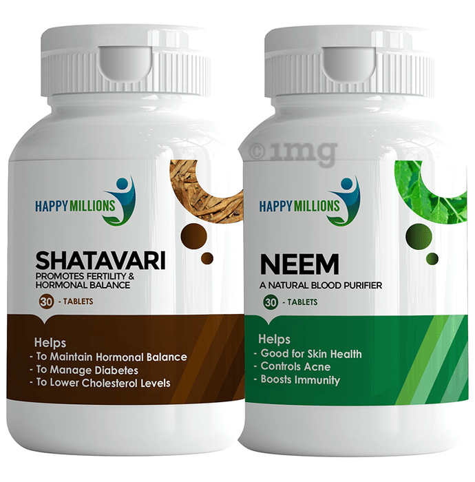 Happy Millions Combo Pack of Shatavari Tablets (30) & Neem Tablets (30)