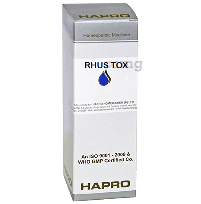Hapro Rhus Tox Dilution is a health tonic used for treating several health complications including itchy skin with rashes, conditions related to herpes, eczema and is highly effective in the treatment of rheumatic pains. It is also helpful in relieving conditions of nausea, vomiting and high body temperature.