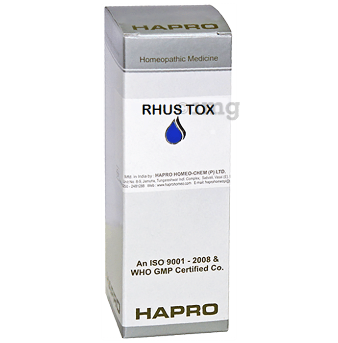 Hapro Rhus Tox Dilution is a health tonic used for treating several health complications including itchy skin with rashes, conditions related to herpes, eczema and is highly effective in the treatment of rheumatic pains. It is also helpful in relieving conditions of nausea, vomiting and high body temperature.