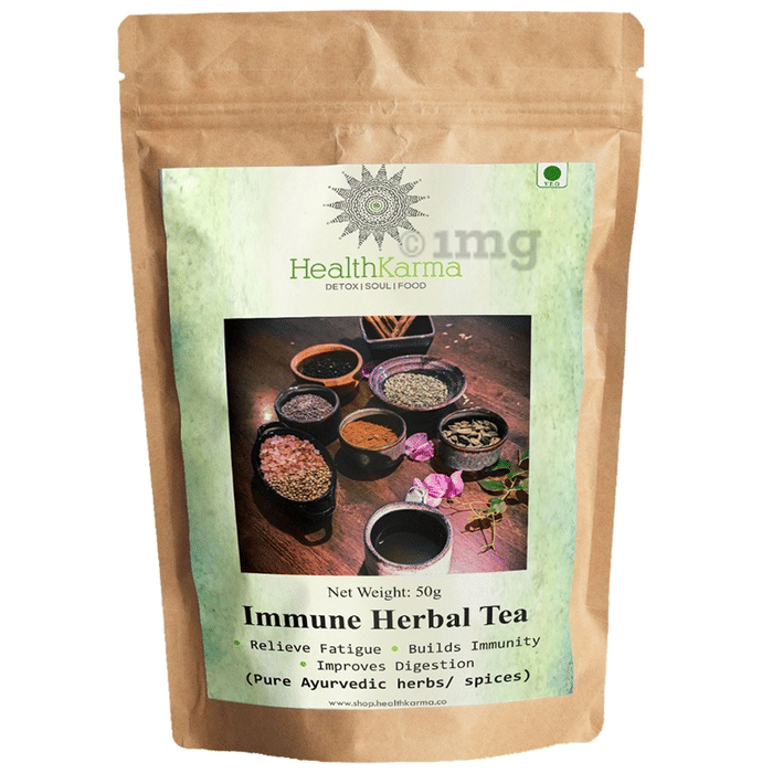 Health Karma Immune Herbal Tea is a blend of potent ingredients like Ashwagandha, Giloy, Turmeric and Fennel that help improve immunity. It also clarifies the mind and beats inflammation. Besides, herbal tea improves digestion.