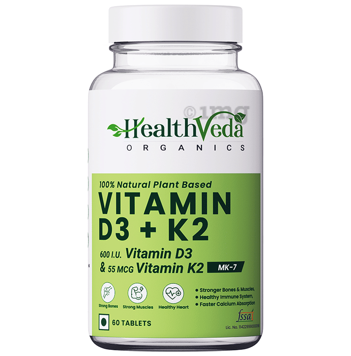 Information about Health Veda Organics Vitamin D3 + K2 Healthy Bones Tablet