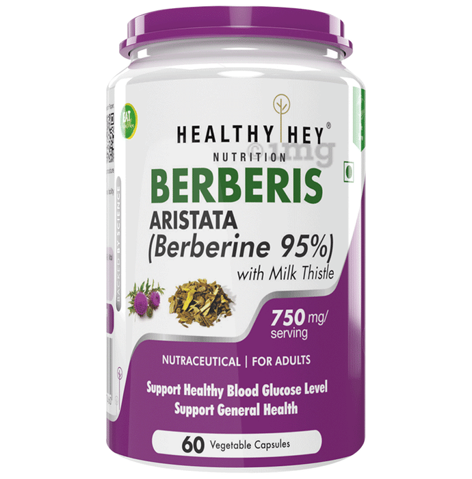 HealthyHey Berberis with Milk Thistle 300 mg Vegetable Capsules is a health supplement that can help regulate blood glucose levels. It may help improve the general well-being of the individual. This is a vegetarian product.