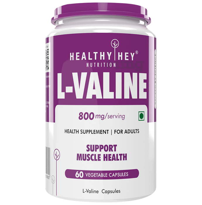 HealthyHey Nutrition L-Valine 800mg Vegetable Capsule contains L-valine, along with l-leucine and l-isoleucine, which is one of three branched-chain amino acids (BCAAs). Valine builds strong muscle, aids in workout recovery and can improve athletic endurance.