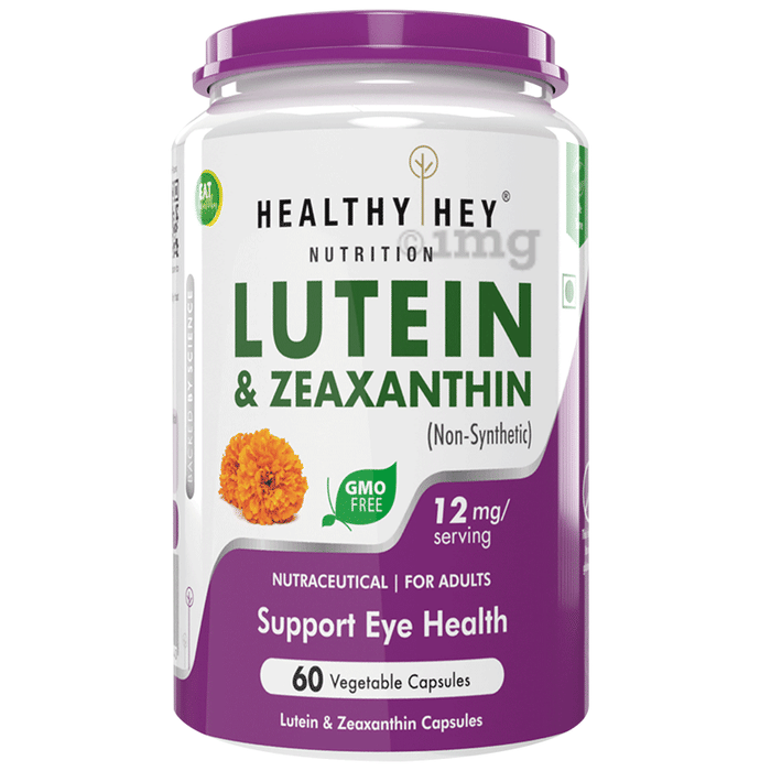 HealthyHey Nutrition Lutein & Zeaxanthin 12mg Vegetable Capsule helps to improve vision in low contrast situations, which is essential for night driving. Lutein plays a role in the maintenance of eye health and is the principle Carotenoid found in the central area of the retina called the macula. Carotenoids are fat-soluble antioxidants found in fruits, vegetables, marigolds and other plants.