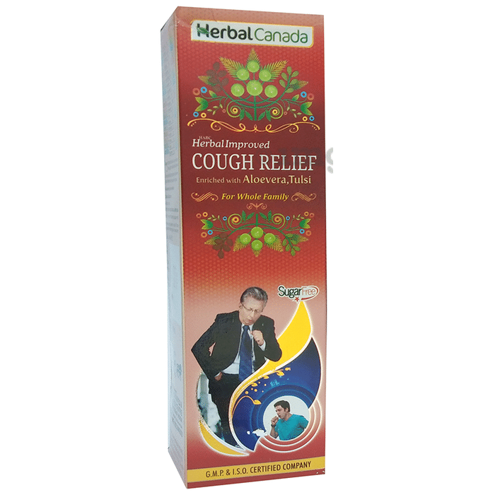 Herbal Canada Herbal Improved Cough Relief Juice Sugar Free is enriched with aloe vera and tulsi which are effective in providing relief from cold and cough.