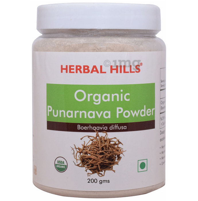 Herbal Hills Organic Punarnava boerhaavia Diffusa Powder is an all-natural ayurvedic powder known to contain detoxifying properties and especially helps in maintaining the health of urinary tract and kidney functions.