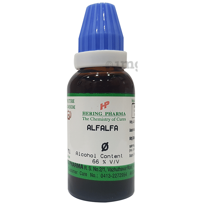 Hering Pharma Alfalfa Mother Tincture Q is a homoeopathic formulation that helps tone up appetite and digestion. It may lower cholesterol and may also have benefits for blood sugar control.