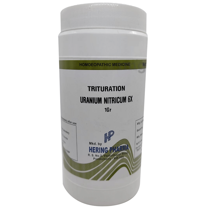 Hering Pharma Uranium Nitricum Trituration Tablet 6X is a homoeopathic medicine that contains uranium nitricum. The key ingredient is known to help with excessive urination, nausea, swelling and burning with urination. It also helps with diabetic neuropathy.