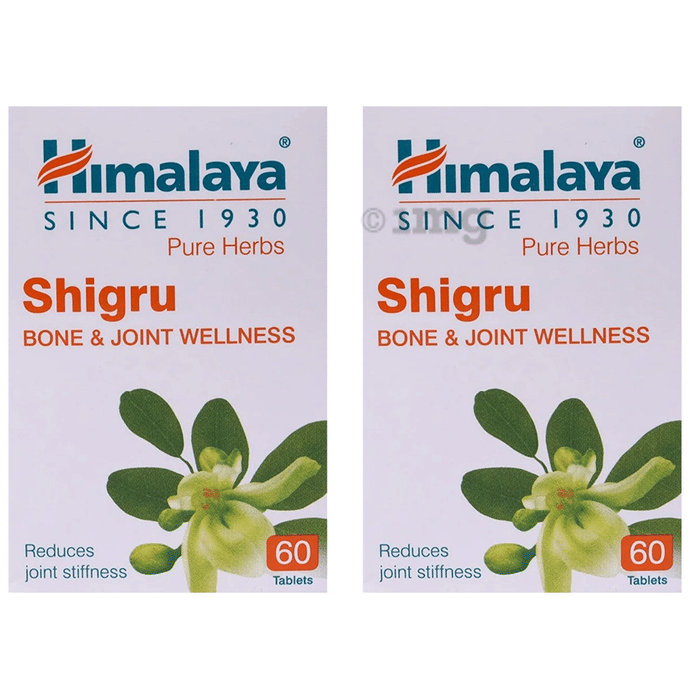 Himalaya Wellness Shigru Bone and Joint Wellness Tablet Himalaya Wellness Pure Herbs Shigru Bone and Joint Wellness Tablet helps suppress joint inflammation and pain by targeting key enzymes that facilitate the release of pro-inflammatory chemicals in the joints. The antioxidant phytoconstituents present in shigru alleviate gouty inflammation of the joint by inhibiting the key enzyme that is involved in excessive uric acid production. Due to its high nutritional content, shigru nourishes body tissues, especially bones and joints.
