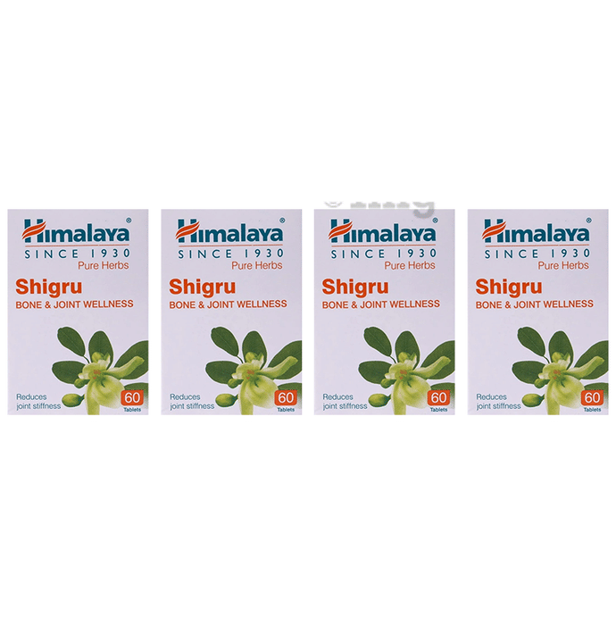 Himalaya Wellness Shigru Bone and Joint Wellness Tablet Himalaya Wellness Pure Herbs Shigru Bone and Joint Wellness Tablet helps suppress joint inflammation and pain by targeting key enzymes that facilitate the release of pro-inflammatory chemicals in the joints. The antioxidant phytoconstituents present in shigru alleviate gouty inflammation of the joint by inhibiting the key enzyme that is involved in excessive uric acid production. Due to its high nutritional content, shigru nourishes body tissues, especially bones and joints.