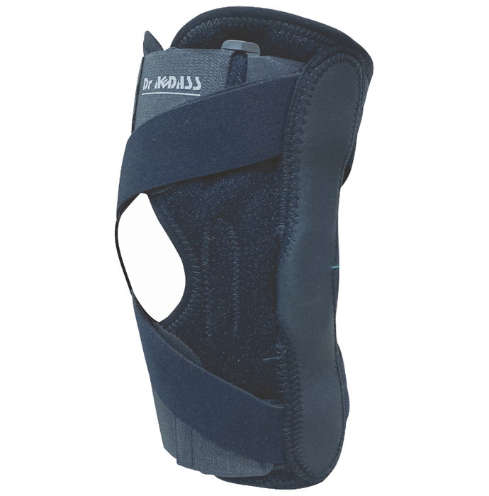 IGR O.A. Knee Brace Right Black provides thigh support and calf support with hook loop velcro straps, allow for an easy and snug fitting. Strap on thigh support provides additional support. It is a unique unilateral polycentric joint knee brace based on 3 point pressure principle, a thigh support and a calf support strap with hook-loop velcro allows for easy and snug fitting.