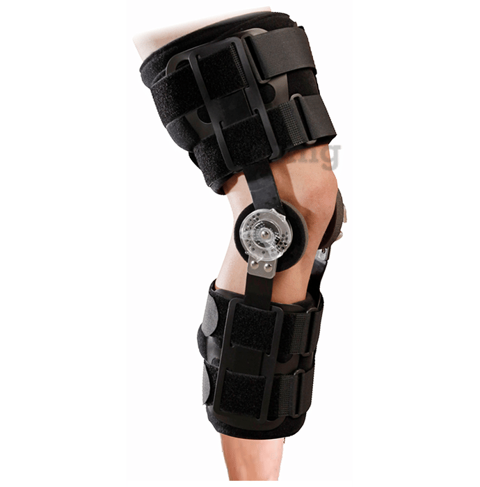 - It helps prevent hyperextension and limits ROM by adjustable dial lock hinges