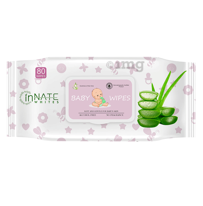 Innate Whites Alcohol Free Baby Wipes with Aloe Vera (80 Each) With Fliptop Lid