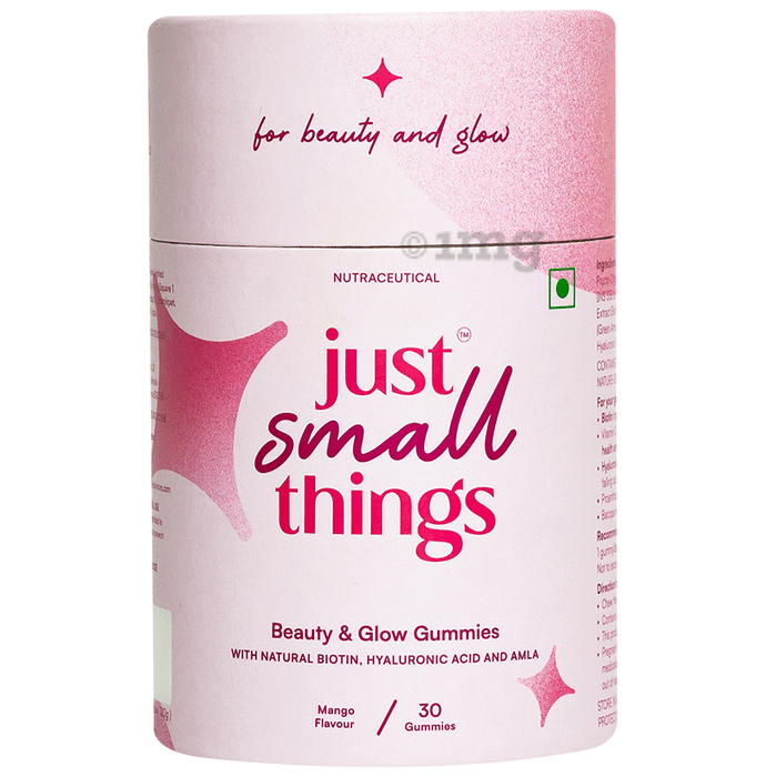 Just Small Things Beauty & Glow Gummies contains natural biotin, hyaluronic acid and amla, which help maintain the skin's glow. Regular consumption of these gummies helps in maintaining healthy skin.