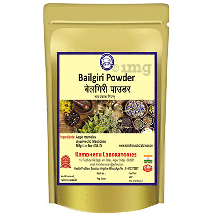 Kamdhenu Laboratories Bailgiri Powder is an Ayurvedic powder that can help strike a balance between Kapha and Vata disorders. It can help enhance digestive strength and improve metabolic activity. It may be useful in boosting endurance and strength for a more active lifestyle. The powderβs antipyretic properties can be beneficial as a laxative and intestinal astringent.