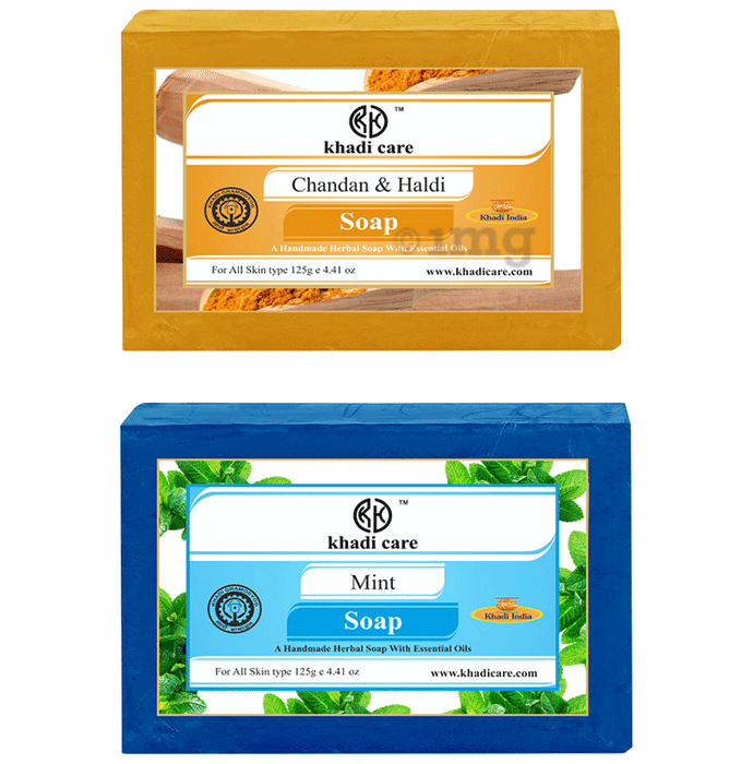 Khadi Care Combo Pack of Herbal Chandan Haldi Soap & Mint Soap (125gm Each)
