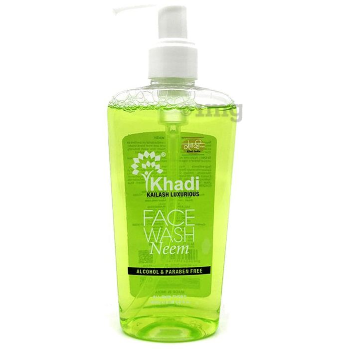 Khadi Kailash Luxurious Neem Face Wash It is enriched with the righteousness of neem that helps manage acne, pimples and other common skin abnormalities. It helps keep your skin clean and energised while also moisturising it to give it a clean and fresh look the whole day