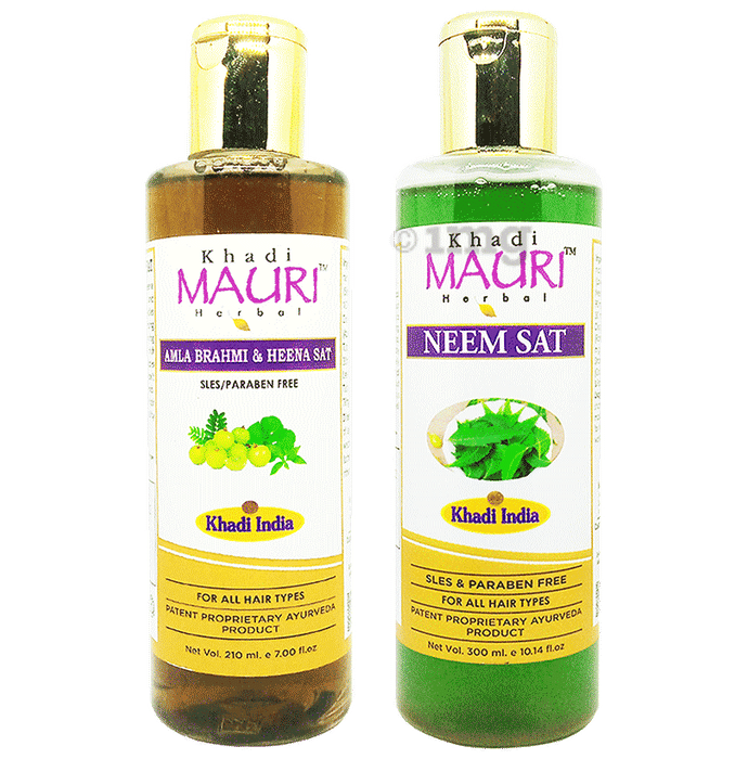 Khadi Mauri Herbal Amla Brahmi Heena Sat (210ml) & Neem Shampoo (300ml)