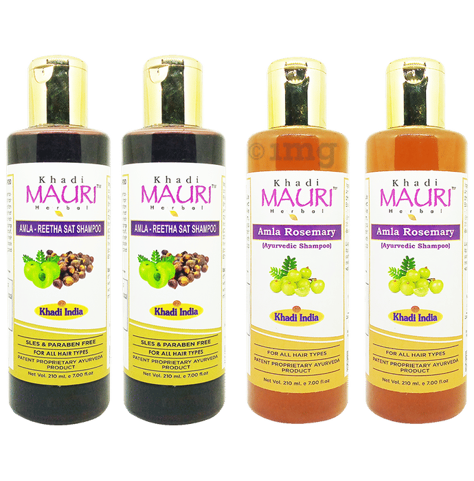 Khadi Mauri Herbal Combo Pack of Amla - Reetha Sat Shampoo (2) & Amla Rosemary Shampoo (2) (210ml Each)