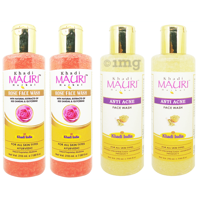 Khadi Mauri Herbal Combo Pack of Anti Acne & Rose Face Wash (210ml Each)
