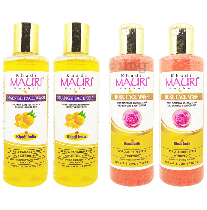 Khadi Mauri Herbal Combo Pack of Orange & Rose Face Wash is a combo pack helps rejuvenate your skin.