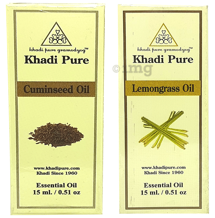 Khadi Pure Combo Pack of Cuminseed Oil and Lemongrass Oil Khadi Pure Cumin Seed Essential Oil is an antiseptic, antispasmodic, antitoxic, bactericidal, carminative, digestive, diuretic, emmenagogue, nervine, stimulant tonic with several health benefits.