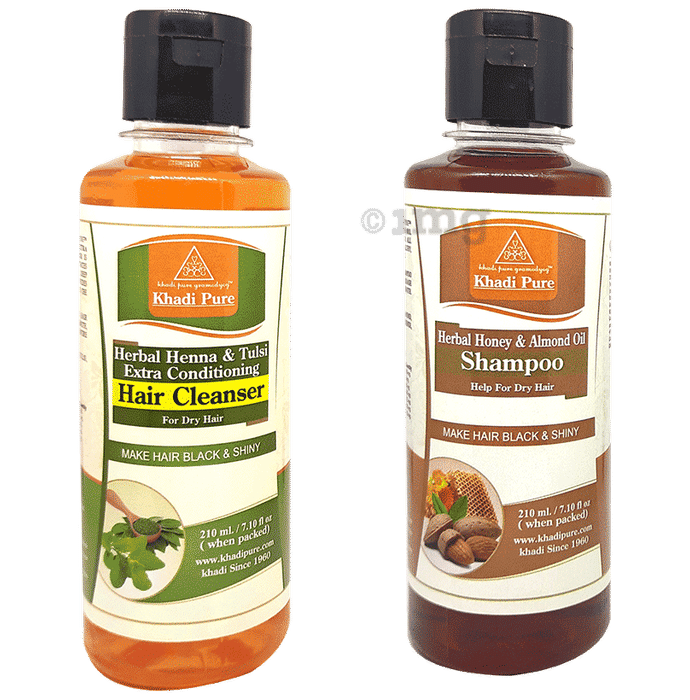 Information about Khadi Pure Combo Pack of Heena & Tulsi Extra Conditioning Hair Cleanser & Herbal Honey & Almond Oil Shampoo (210ml Each)