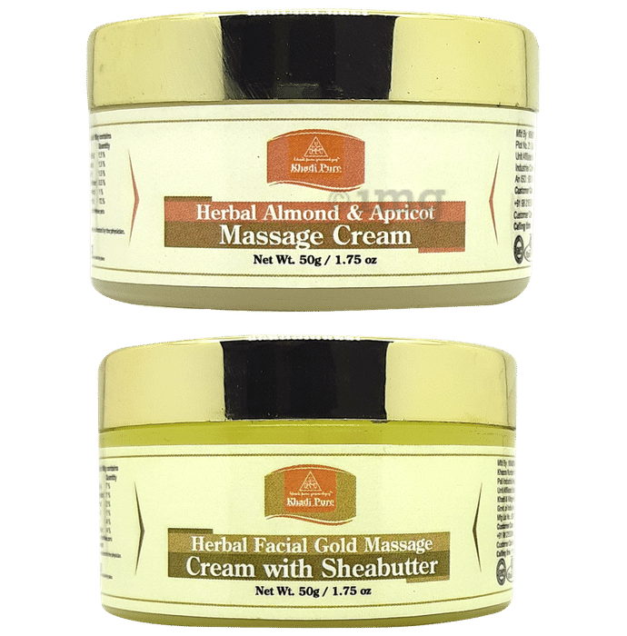 Information about Khadi Pure Combo Pack of Herbal Almond & Apricot Massage Cream & Herbal Facial Gold Massage Cream (50gm Each)