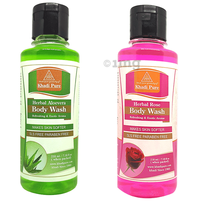 Khadi Pure Combo Pack of Herbal Aloevera Bodywash & Herbal Rose Bodywash SLS & Paraben Freea combo product of two herbal body wash, that helps rejuvenate your skin.