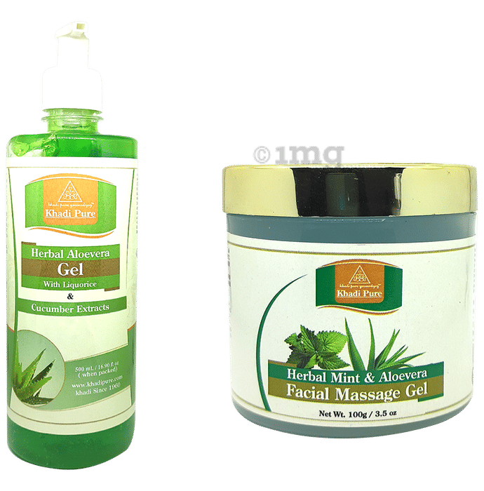 Information about Khadi Pure Combo Pack of Herbal Aloevera Gel (500ml) and Herbal Mint Aloevera Facial Massage Gel (100gm)