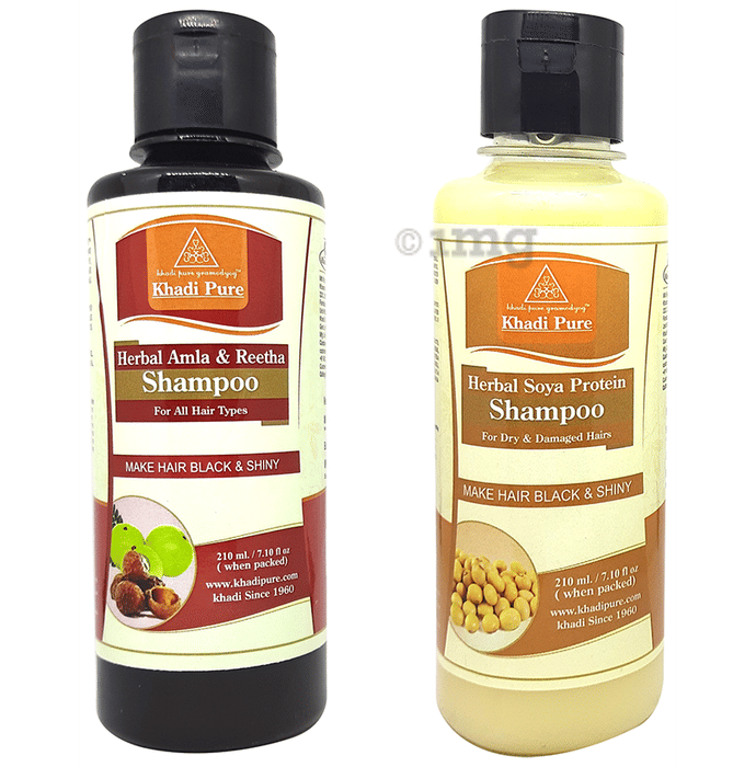 Information about Khadi Pure Combo Pack of Herbal Amla & Reetha Shampoo & Herbal Soya Protein Shampoo (210ml Each)