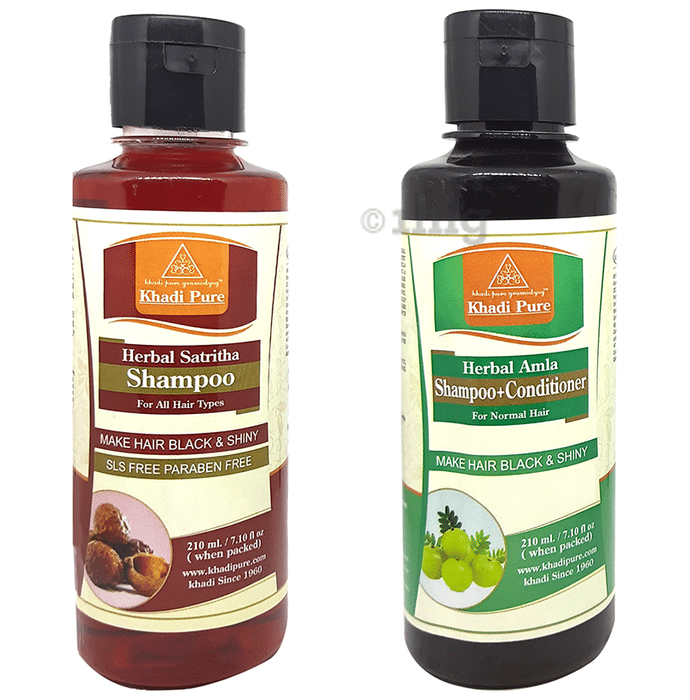 Information about Khadi Pure Combo Pack of Herbal Amla Shampoo+Conditioner & Herbal Satritha Shampoo SLS & Paraben Free (210ml Each)