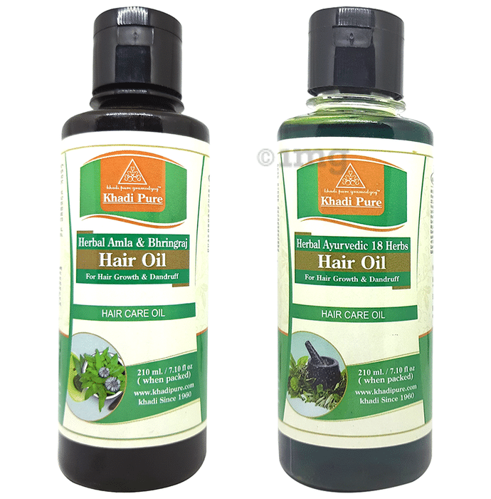 Information about Khadi Pure Combo Pack of Herbal Ayurvedic 18 Herbs Hair Oil & Herbal Amla & Bhringraj Hair Oil (210ml Each)