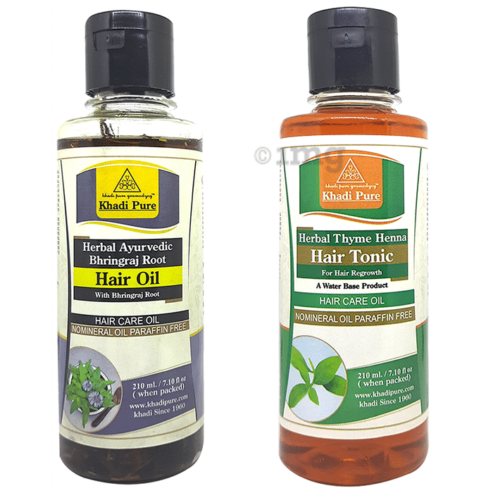 Information about Khadi Pure Combo Pack of Herbal Ayurvedic Bhringraj Root Hair Oil & Herbal Thyme Heena Hair Tonic Mineral & Paraffin Oil Free (210ml Each)