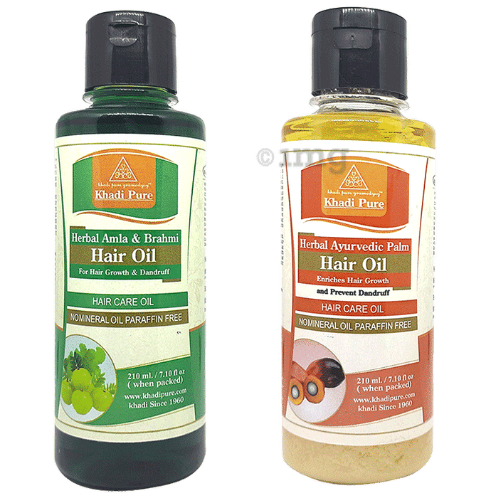 Information about Khadi Pure Combo Pack of Herbal Ayurvedic Palm Hair Oil & Herbal Amla & Brahmi Hair Oil No Mineral Oil & Paraffin Free (210ml Each)