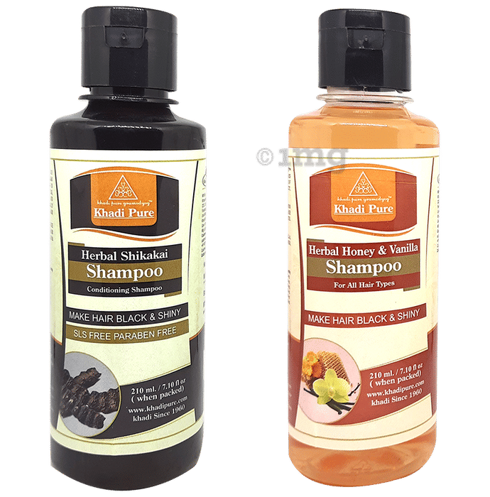 Information about Khadi Pure Combo Pack of Herbal Honey & Vanilla Shampoo & Herbal Shikakai Shampoo SLS Free & Paraben Free (210ml Each)