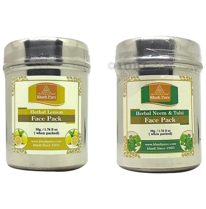 Information about Khadi Pure Combo Pack of Herbal Lemon Face Pack & Herbal Neem & Tulsi Face Pack (50gm Each)
