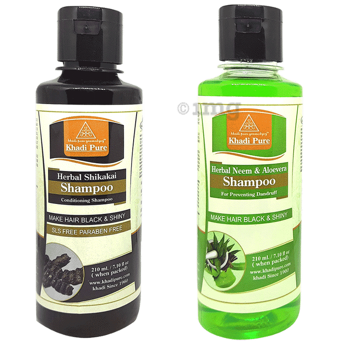 Information about Khadi Pure Combo Pack of Herbal Neem & Aloevera Shampoo & Herbal Shikakai Shampoo SLS Free & Paraben Free (210ml Each)