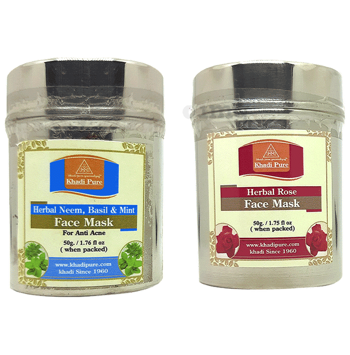 Khadi Pure Combo Pack of Herbal Neem, Basil,& Mint Face Mask & Herbal Rose Face Mask is a combo pack of face masks having properties which help to make the skin blemish-free and radiant.