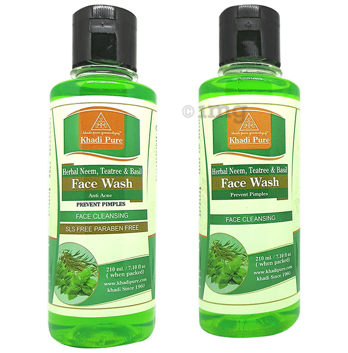 Information about Khadi Pure Combo Pack of Herbal Neem, Teatree & Basil Face Wash & Herbal Neem, Teatree & Basil Face Wash SLS Free & Paraben Free (210ml Each)