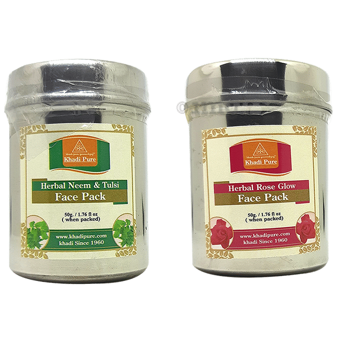 Information about Khadi Pure Combo Pack of Herbal Neem & Tulsi Face Pack & Herbal Rose Glow Face Pack (50gm Each)