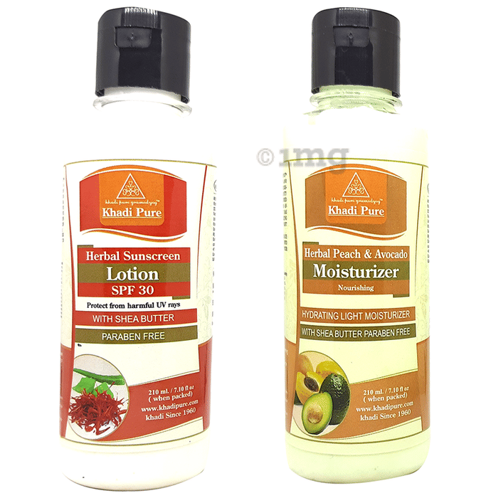 Information about Khadi Pure Combo Pack of Herbal Sunscreen Lotion SPF 30 Paraben Free & Herbal Peach & Avocado Moisturizer (210ml Each)