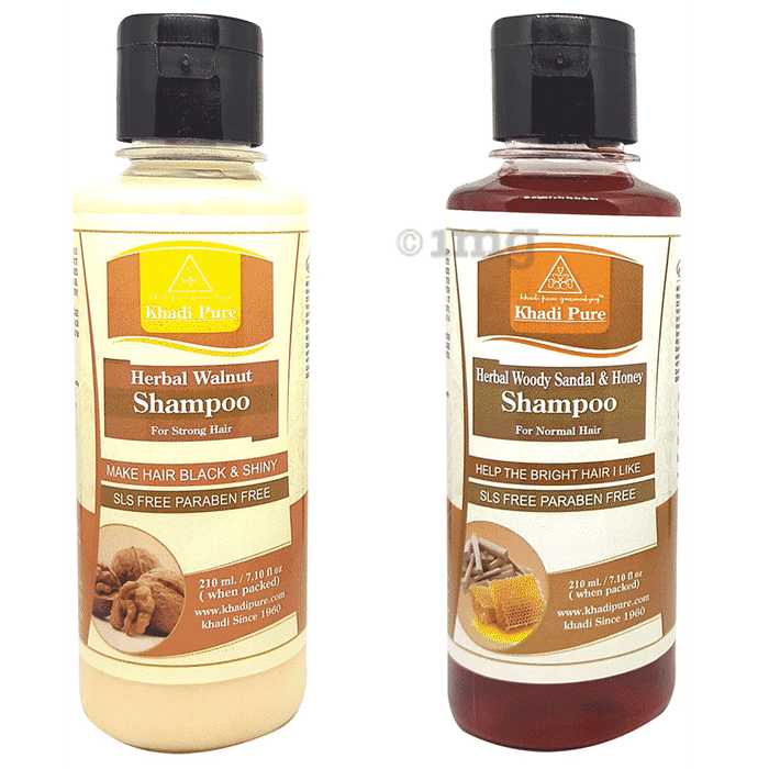 Khadi Pure Combo Pack of Herbal Walnut Shampoo & Herbal Woody Sandal & Honey Shampoo SLS Free & Paraben Free (210ml Each)