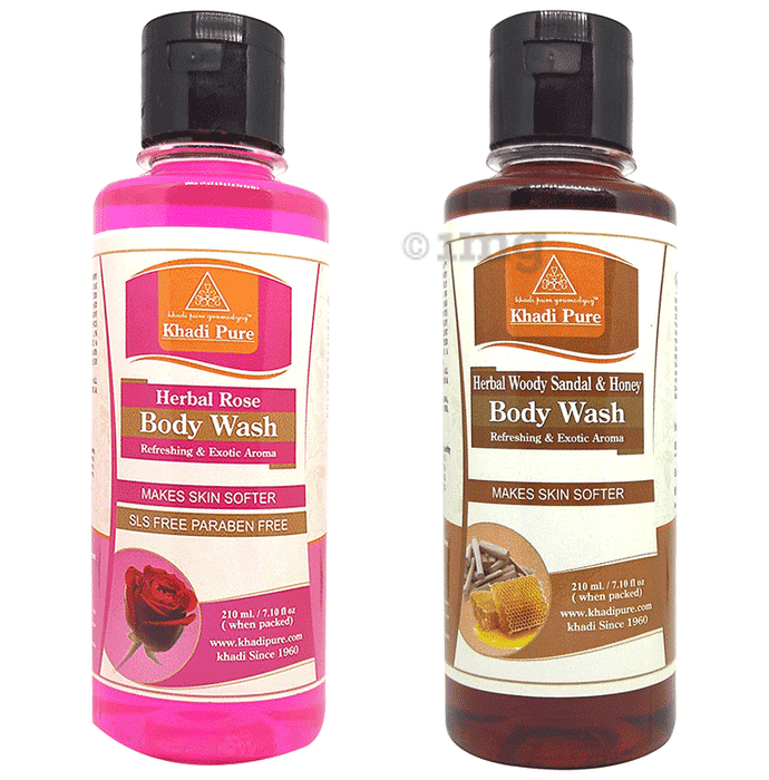 Information about Khadi Pure Combo Pack of Herbal Woody Sandal & Honey Body Wash & Herbal Rose Body Wash SLS Free & Paraben Free (210ml Each)