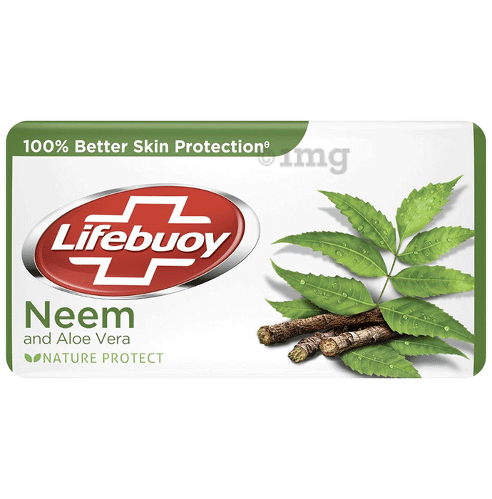 Lifebuoy Skin Protection Neem & Aloe Soap is a natural germ protection soap that helps protect the skin and improves overall skin health. It is enriched with the goodness of neem which has antibacterial properties and aloe vera that help soothe the skin.