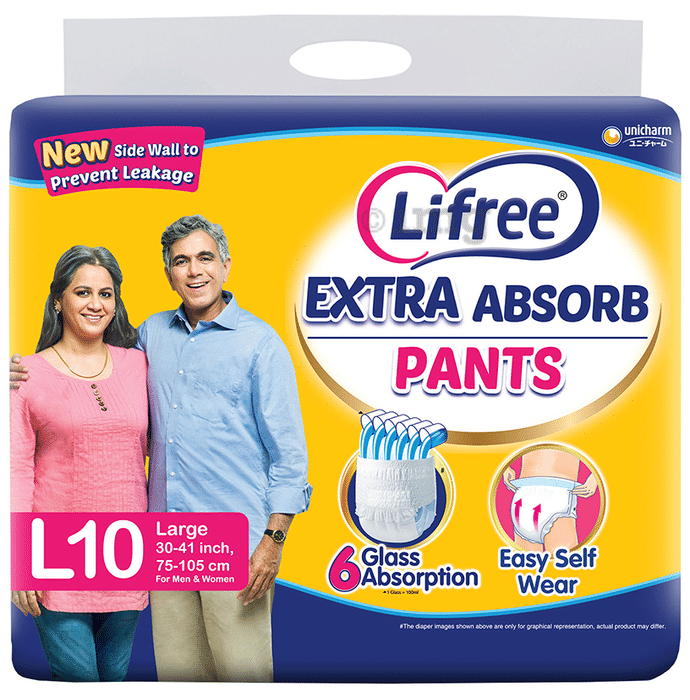 Lifree Extra Absorb Pants is specially designed to help the elderly or anyone who is bed ridden and thus may not be able to use the bathroom as and when they want to. It comes with a powerful absorbent sheet that prevents leakge and helps them function with maximum comfort. It is available in three different sizes, namely, Large, Medium and Extra large.